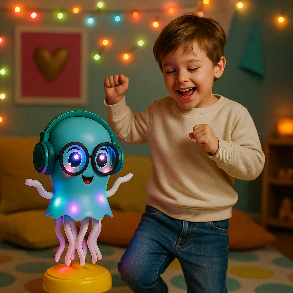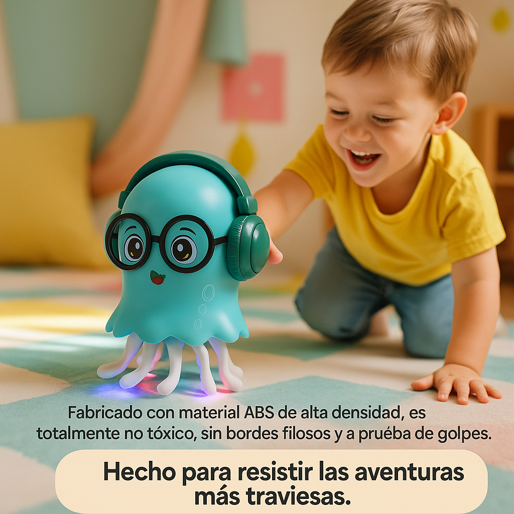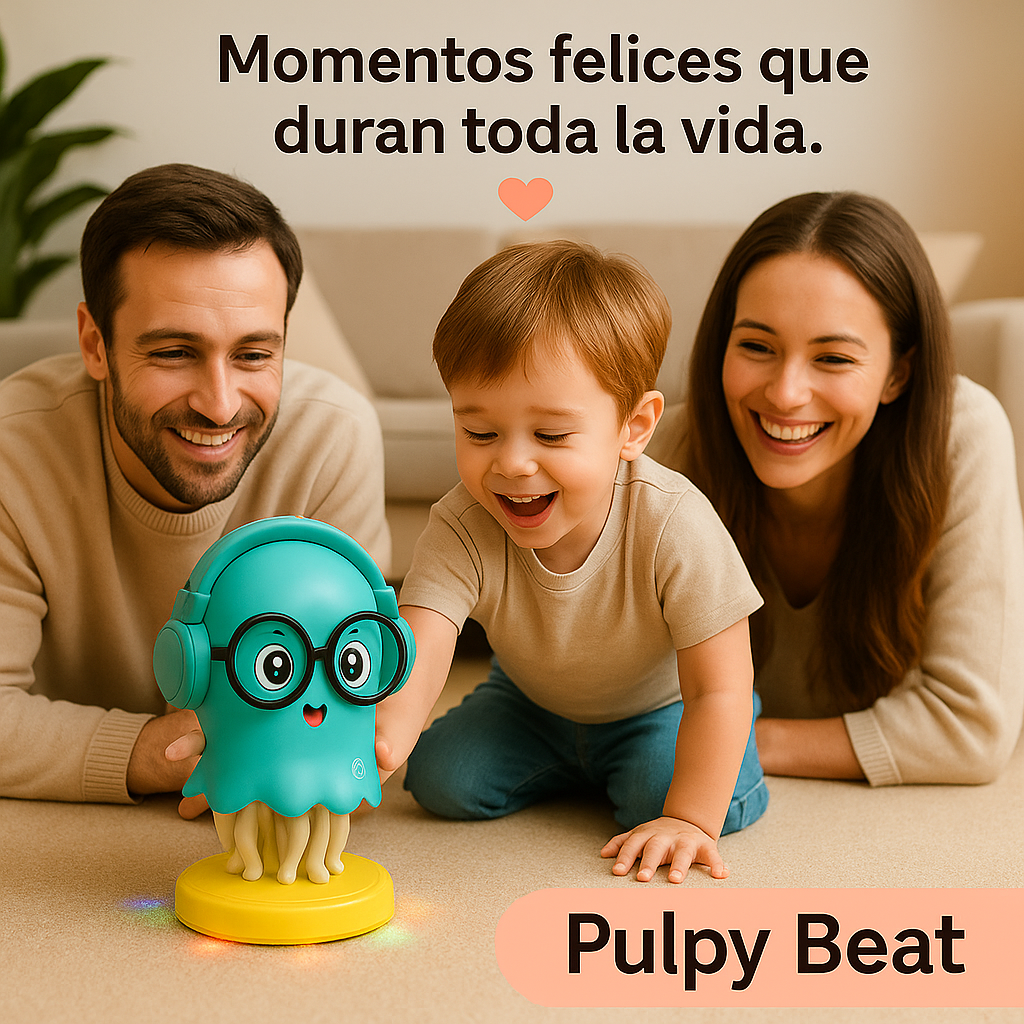 Gracias a su música y luces, el juguete genera un ambiente de alegría, confianza y movimiento. Los niños se expresan, inventan coreografías y desarrollan su creatividad sin límites. Pulpy Beat convierte la habitación en un pequeño escenario lleno de sonrisas.